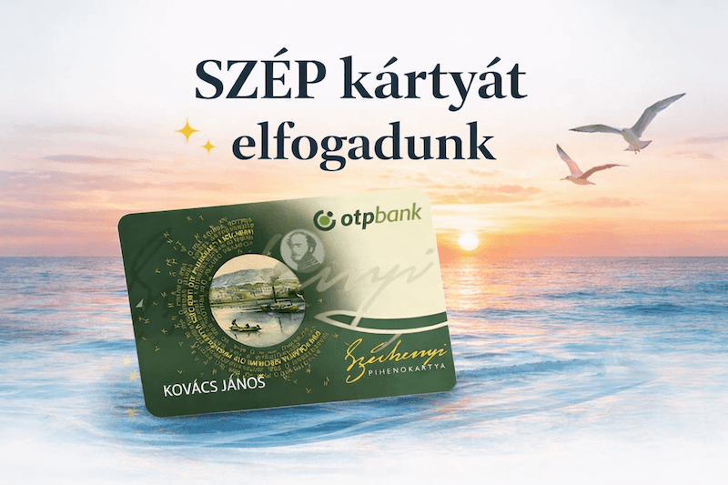 OTP SZÉP KÁRTYÁT elfogadunk. Szép kártyás fizetés esetén az idegenforgalmi adót készpénzben kérjük rendezni.